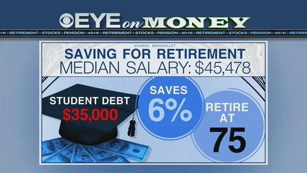 What’s that mean in real terms? If a 23-year-old earning the median salary, who has $35,000 in student debt, can only manage to save 6 percent annually because he has to pay back his loan, he can expect to retire at 75. Without the loan, he might easily manage to increase that savings to 10 percent annually, and the retirement age drops by five years.